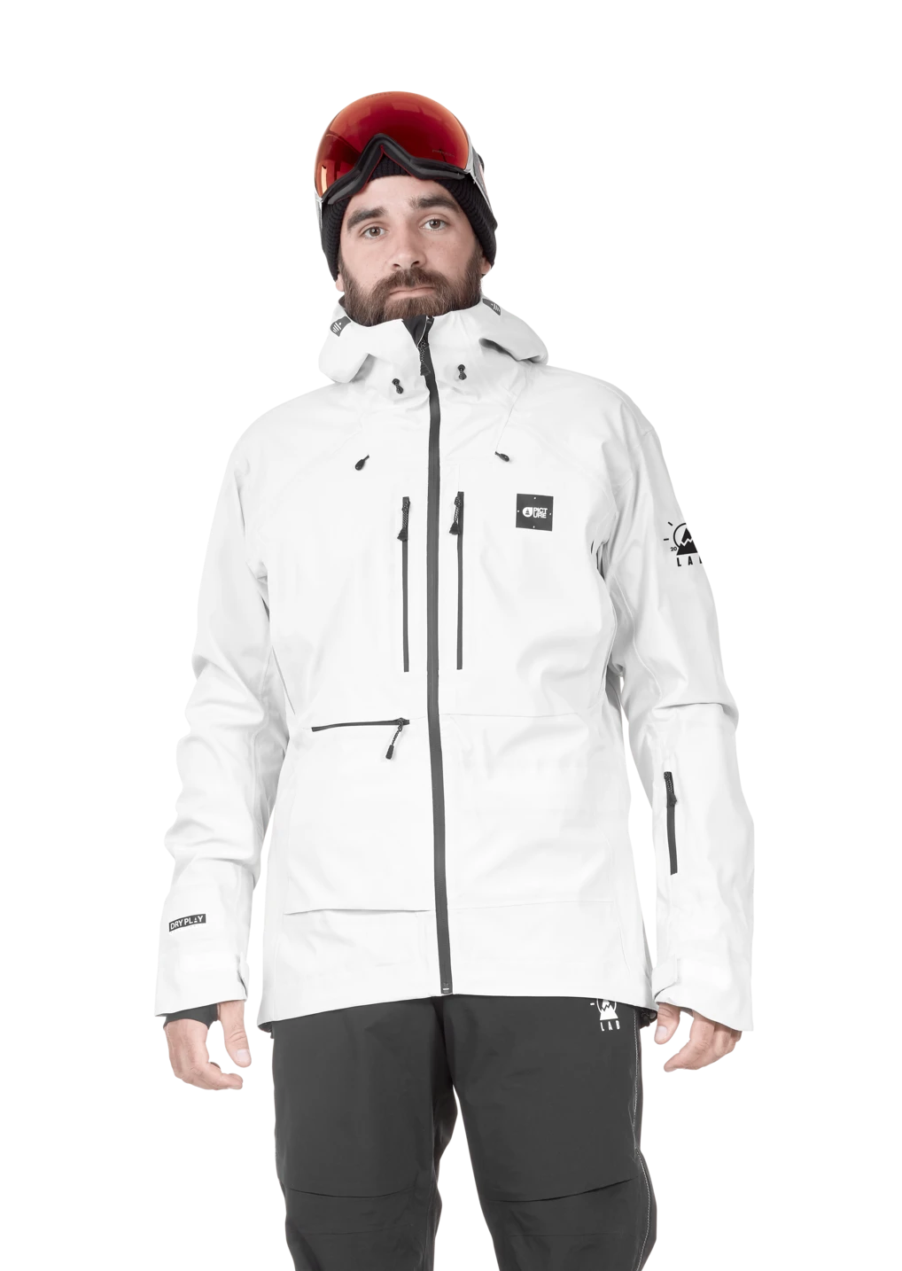 Kierrätettävä DRYPLAY 20K/20K PFOA/PFOS-vapaa kalvo sekä teipatut saumat takaavat sen, että pysyt kuivana, vaikka vesisateessa ja hikoillessa kalvo hengittää ja kainaloiden vetoketjulliset ilmanvaihtoaukot päästävät höyryt ulos. Säädettävä huppu, hihojen suut sekä lumilukko, joka voidaan kiinnittää housuihin, takaavat sen, että lumi pysyy takin ulkopuolella.