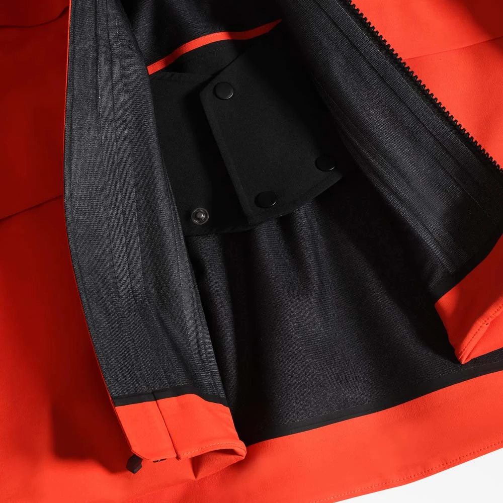 - Fixed, helmet-compatible drop hood with riveted cord-lock adjustment system